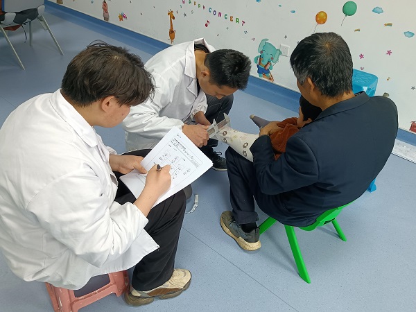 为实现残疾儿童精准评估适配,区残联特邀省辅具中心技术专家前来评估筛查,专家细心与家长沟通,详细询问观察残疾儿童身体状况,填写评估表、处方表等相关材料,根据每个孩子需要矫正的不同部位,现场检查评估、测量取模,为每位残疾儿童适配矫形器、辅助器具提供个性化、科学化的适配方案。评估适配现场,技术专家现场开展康复指导教学,为定点康复机构医师和残疾儿童家长详细介绍矫形器、助行器等各类辅具的功能及使用方法,确保残疾儿童能借助矫形器、辅具有效提升康复训练效果。