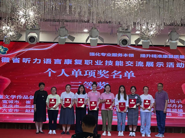 6月19-21日,在安徽省听力语言康复职业技能交流展示活动中,宣城市代表队荣获团体优秀组织奖,儿童文学作品创编表演荣获全省第四名、个人三等奖。
