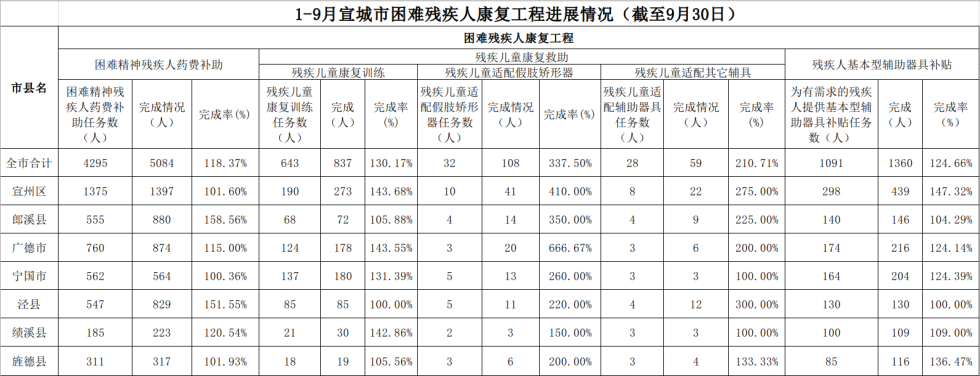 2025年1-9月宣城市困难残疾人康复工程进展情况