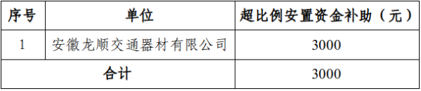 根据《安徽省省级残疾人事业发展补助资金使用管理办法》的通知(皖财社〔2025〕86号)要求,对符合条件的1家超比例安排残疾人就业用人单位给予奖励,现公示如下: